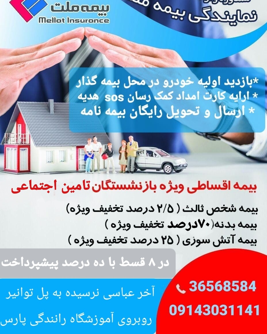 روش دیگر تماس باشماره های 04136568584 و 09143031141 بعنوان نمایندگی شرکت بیمه ملت در تبریز و استعلام تلفنی قیمت است.